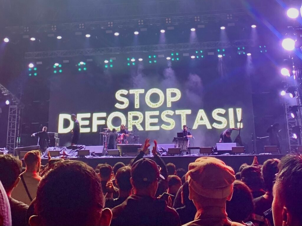 “Kita berduka untuk Sumatera. Tidak akan ada musik di dalam planet yang mati. Tidak akan ada musik di dalam Indonesia yang mati,” ujar Usman sambil membentangkan bendera bertuliskan slogan powerful Music Declares Emergency, “NO MUSIC ON A DEAD PLANET”. Pesan yang dalam untuk mengawali penggalan lirik yang tidak kalah kuat dari lagunya, “Rain that kills creatures and turns life to hell, rain it’s no longer rain.”
